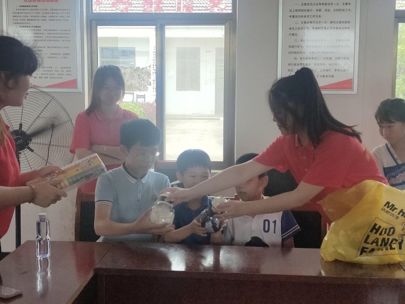 7月4日上午,實踐團來到實地普通話推廣重要一站——無為市劉渡鎮農林村。農林村村中總人口3000余人,常住人口1000余人,村內居民主要以老人以及留守兒童為主。活動開展前,村支書和駐村工作隊談到,兒童是農林村的未來,提高幼兒普通話水平是創建美好未來的首要一步,因此,普通話推廣工作極其重要。隨后,團隊隊員通過開展“有趣的卡片游戲”“中國故事會”等游戲活動寓教于樂,激發孩子們對普通話學習的興趣,孩子們沉浸游戲中,歡聲笑語,氣氛熱烈。在游戲過程中,團隊成員不時糾正孩子們的發音,解決孩子們在說普通話時遇到的問題,引導孩子們正確的講普通話。游戲結束后,孩子們通過自己的努力均獲得了小禮物,提高了說普通話的意識。