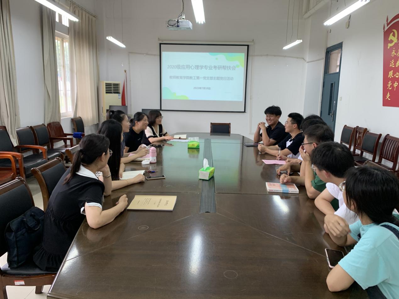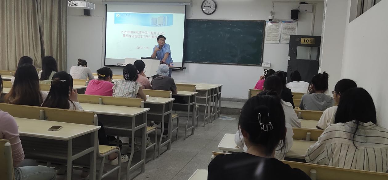 炎炎夏日,驕陽似火。為鼓勵考研學子,增強考研信心,緩解備考壓力,7月18日下午,教師教育學院教工第一黨支部在藝術樓會議室與博學樓103教室分專業(yè)舉行了考研幫扶活動。教師教育學院副院長鄭艷、教工第一黨支部書記甘超、輔導員曾鵬、教育系部分黨員教師與留校考研學生參加。