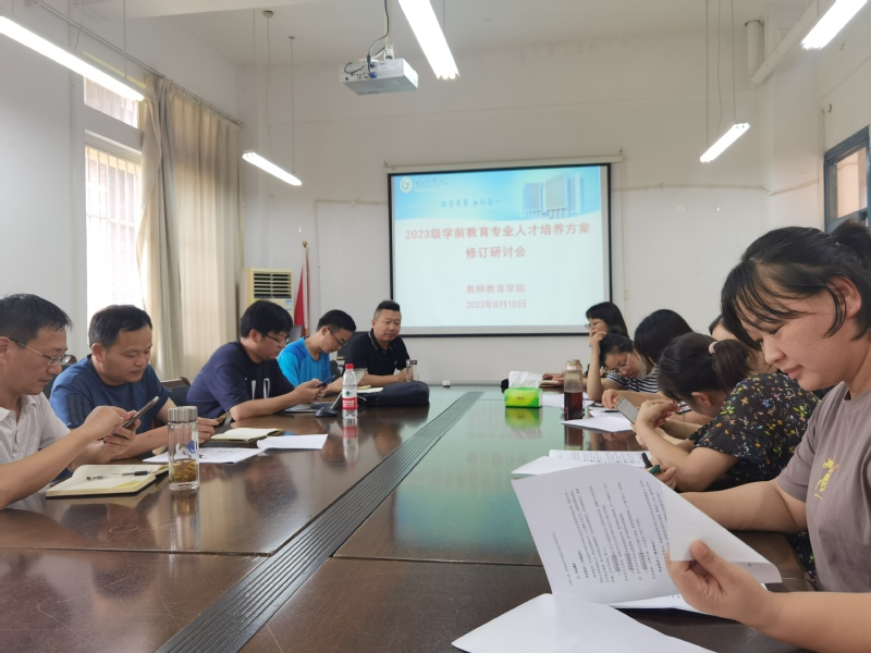2023年8月10日下午,學前教育專業(yè)在院會議室召開“2023級學前教育專業(yè)人才培養(yǎng)方案修訂研討會”,會議由教育系主任、學前教育專業(yè)負責人甘超主持,實驗中心主任以及學前教育全體教師參加。教師教育學院副院長蔡廣、鄭艷列席會議。