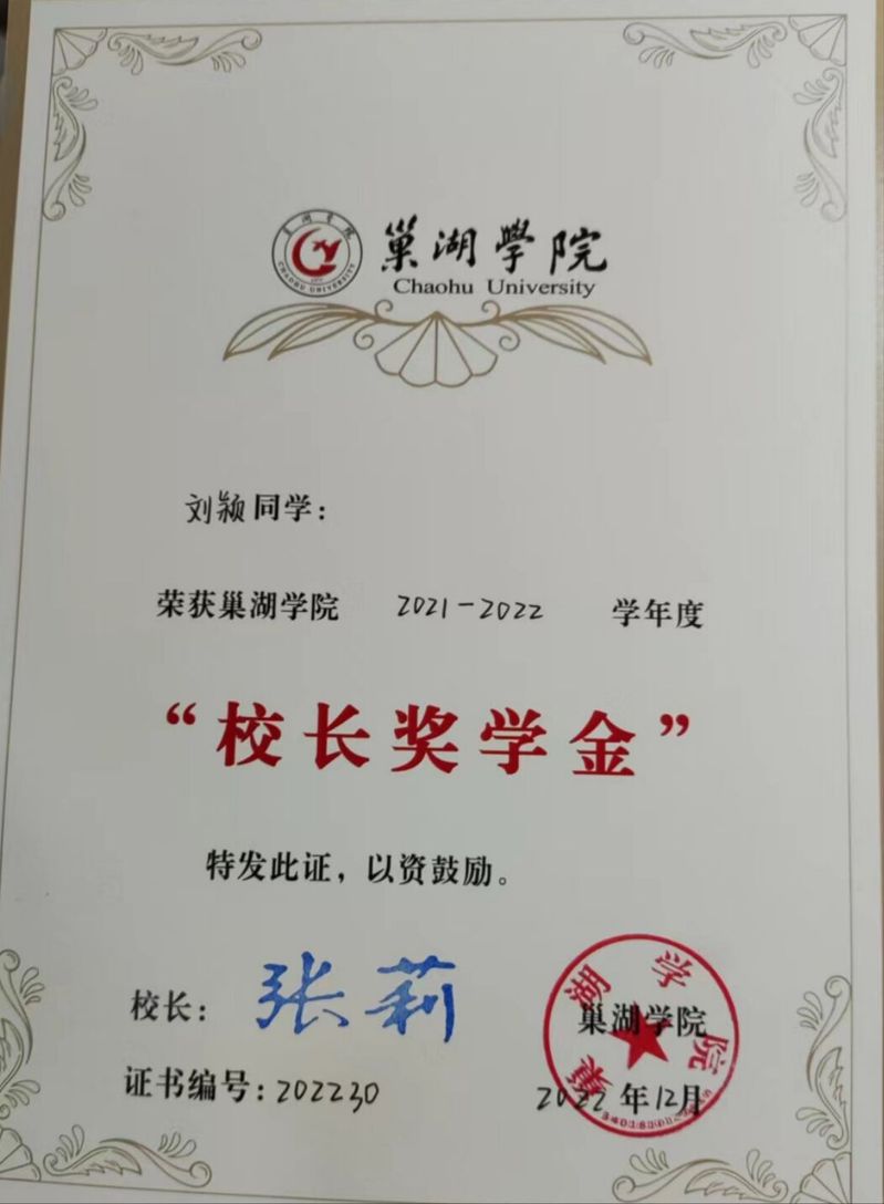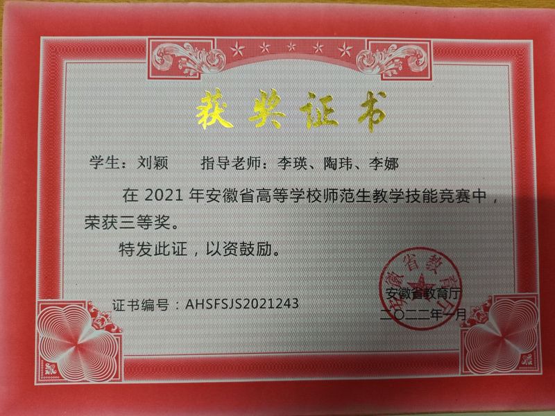 劉穎,女,漢族,中共黨員,安徽省蚌埠市人,巢湖學院教師教育學院2019級學前教育1班學生。在校期間,曾獲得國家勵志獎學金、校長獎學金、安徽省高等學校師范生教學技能競賽三等獎、安徽省大學生藝術展演三等獎、巢湖學院第九屆舞蹈大賽特等獎、巢湖學院師范生教學技能競賽二等獎。被授予省級優秀畢業生、優秀學生、黨校學習優秀學員等稱號。在2023年考研中,成功考取安徽師范大學學前教育專業。