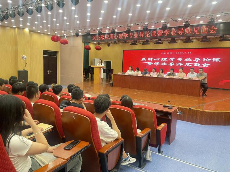為了幫助2023級新生盡快適應大學生活,增進師生交流,引導學生熟悉專業培養目標和課程設置,確立正確的專業發展方向。應用心理學專業于9月18日晚上7點,在藝術樓報告廳召開了專業導論課暨學業指導教師見面會。本次見面會由應用心理學專業教師張碧影主持,專業所有帶學業指導的教師和23級應用心理學專業全體學生參加此次見面會。