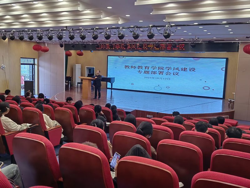 為持續加強學院學風建設,營造濃郁學習氛圍,激發學習動力,10月12日中午12:00,教師教育學院在藝術樓報告廳召開學風建設專題部署會議,學院全體專職輔導員、各班班長、學習委員、生活委員參會,本次會議由學院黨委副書記左勁中主持。
