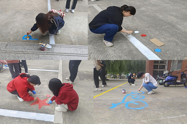 活動中,工作人員根據停車位繪畫需求,給同學們發放刷子、漆桶、顏料等相關工具,確保每個參與者都配備相關工具。根據停車位的設計要求,同學們對繪畫區域使用粉筆及可擦除的材料進行標記,并在各自規定的區域內進行創作,引起師生們駐足觀望。繪制過程中,同學們互相幫助,配合默契,最終達到了預期的效果。同學們紛紛表示這是一次全新的體驗,整個過程新奇有趣,不僅鍛煉了繪畫技能,還收獲了喜悅、成功與獲得感。