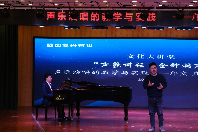 為了深入學習貫徹習近平文化思想,落實全國宣傳思想文化工作會議精神。12月6日下午14:30,“‘聲歌講壇,金鐘潤聲’聲樂演唱的教學與實踐——鄺實 莊云龍公開課”在巢湖學院藝術樓報告廳隆重舉行。本次活動由巢湖學院教師教育學院、巢湖市音樂家協會聯合主辦,合肥雅齊藝術空間承辦,巢湖市器樂家協會協辦。出席活動的嘉賓有巢湖市文學藝術節聯合會副主席楊慧濤;巢湖市音樂家協會主席李倩。教師教育學院班子全體成員、音樂系全體教師、部分學生,以及來自巢湖市文化界音樂愛好人士200余人觀摩學習了本次公開課。