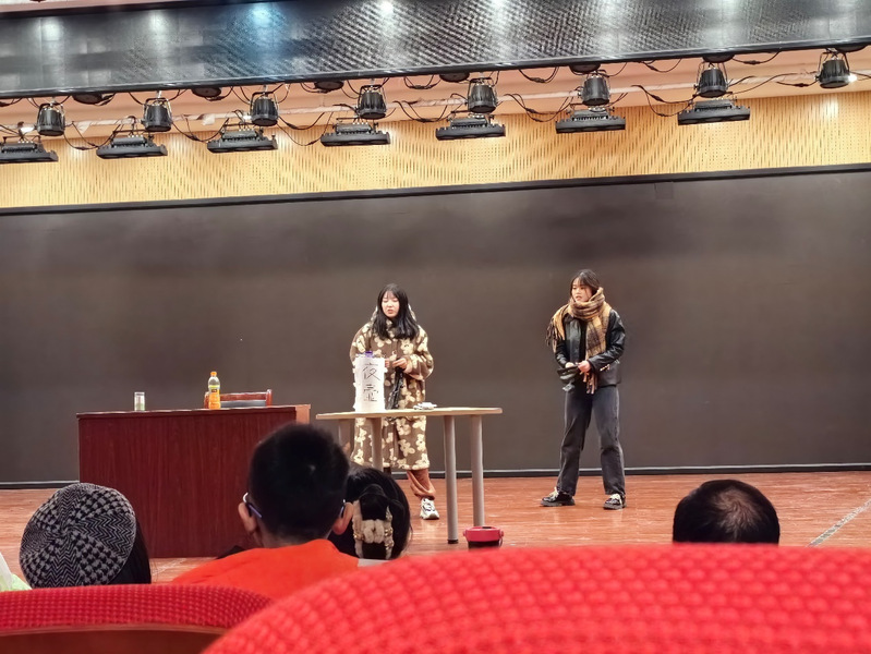匯報于12月21日晚六點半在二樓音樂廳舉行,為了保證每個作品的內容和思想的正確性,授課教師戴銘還特邀了教師教育學院黨委副書記、紀委書記左勁中和學院紀委委員周澤漢、李娜兩位老師作為內容指導。本場結課匯報由主持人方婷、張凌霞、趙成成和汪成鑫四人開場,現場氣氛活躍。同學們在匯報演出中激情碰撞,大顯身手,在作品創作上充分展現了學生們的創新思維。