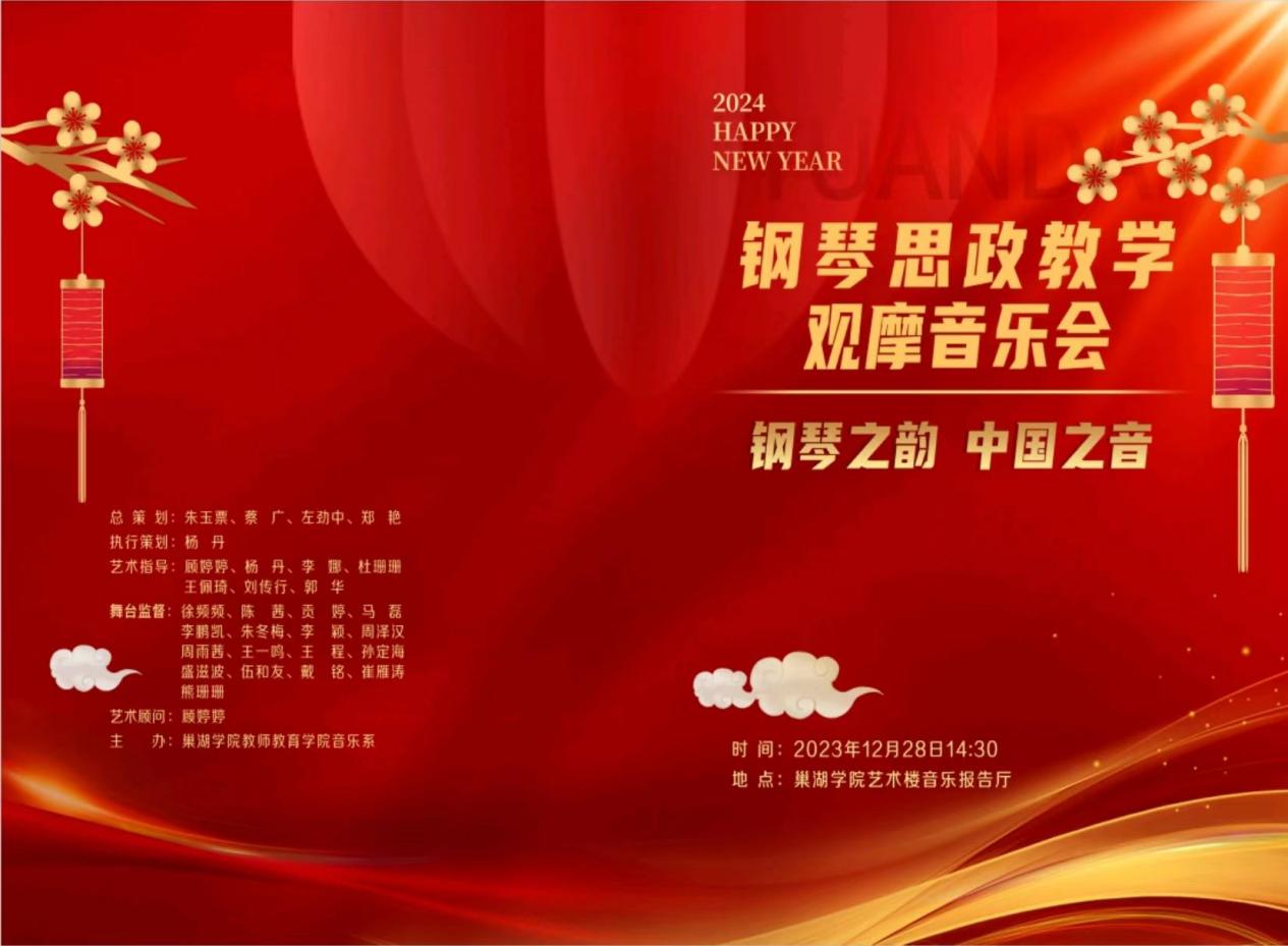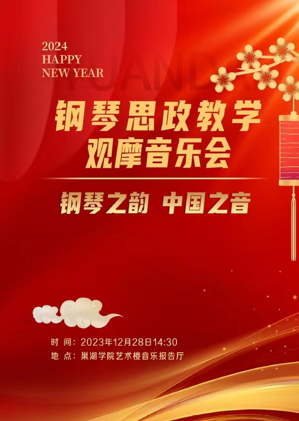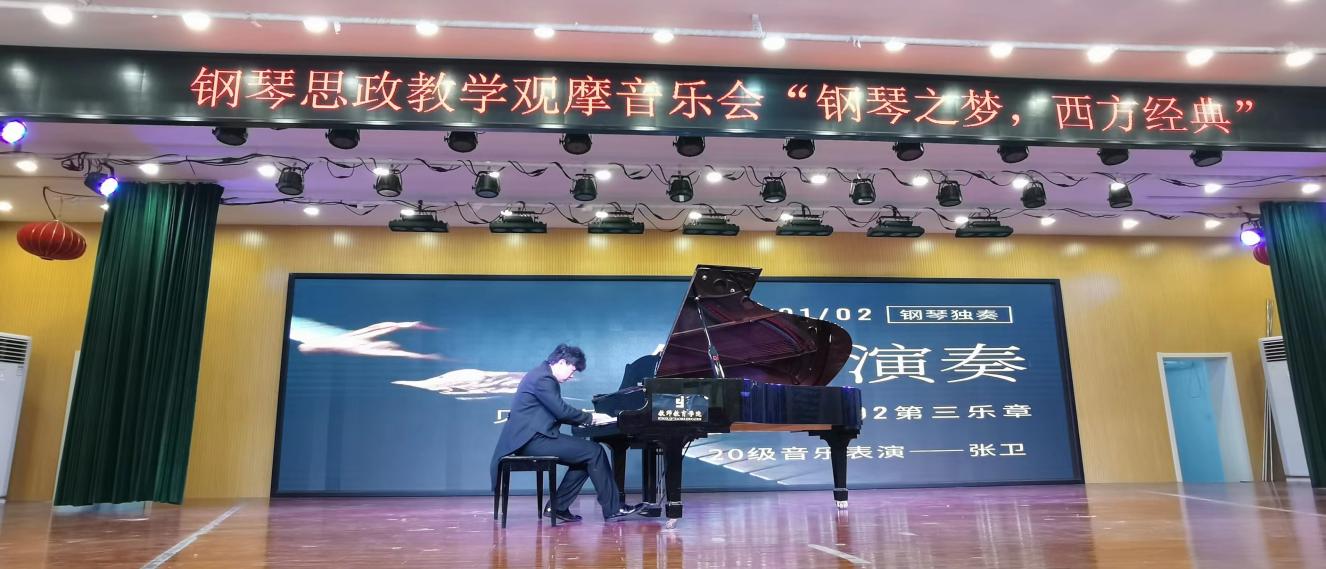 2024年1月2日,教師教育學院音樂系在藝術樓音樂報告廳舉辦了兩場鋼琴思政教學觀摩音樂會——《鋼琴之夢,西方經典》和《鋼琴之韻,中國之音》。此次鋼琴觀摩音樂會由楊丹老師精心策劃,顧婷婷、李娜、杜珊珊、王佩琦、王程、劉傳行等全體鋼琴組老師參與,以鋼琴獨奏、四手聯彈形式讓人們“感受作品、感知音韻、感悟意蘊、升華情感”,現場反響熱烈。