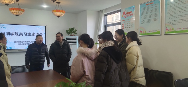 2024年1月9日,教師教育學(xué)院書(shū)記朱玉票、副院長(zhǎng)蔡廣、專業(yè)教師張平先后前往安巢實(shí)驗(yàn)幼兒園、巢湖市恒大帝景幼兒園、巢湖市中心幼兒園山水華庭分園、巢湖市市直機(jī)關(guān)幼兒園看望學(xué)前教育專業(yè)實(shí)習(xí)生,開(kāi)展實(shí)習(xí)交流工作。