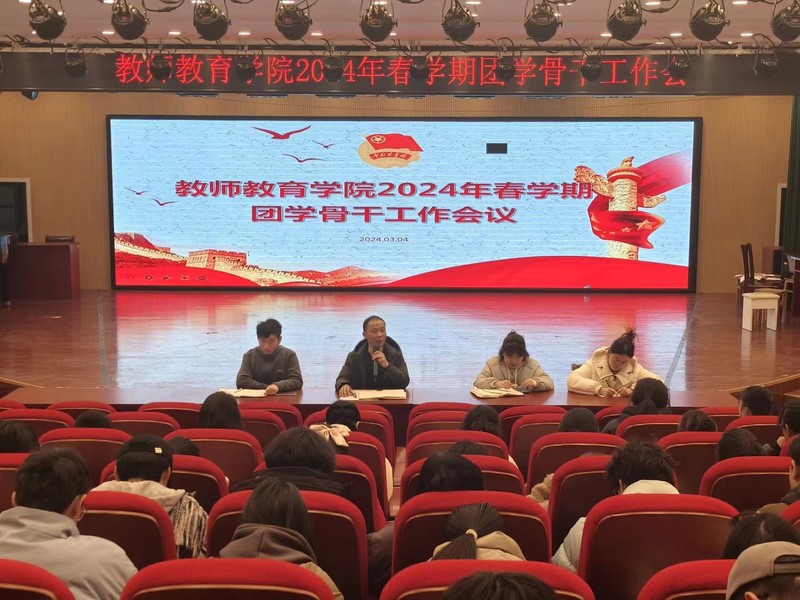 為高效有序推進新學期團學工作,加強團學骨干隊伍能力建設,進一步統一思想、凝聚力量,3月4日中午12:30,教師教育學院在藝術樓報告廳召開2024年春學期團學骨干工作會議。學院黨委副書記左勁中、團委掛職副書記代佳鑫、輔導員王相及各團學組織全體成員參會,本次會議由團委副書記湯重主持。