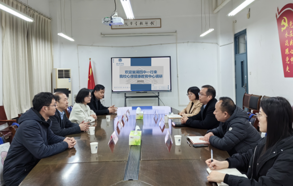 為深入落實(shí)教育部等十七部門(mén)聯(lián)合印發(fā)的《全面加強(qiáng)和改進(jìn)新時(shí)代學(xué)生心理健康工作專(zhuān)項(xiàng)行動(dòng)計(jì)劃(2023—2025年)》,總結(jié)交流學(xué)生心理健康工作經(jīng)驗(yàn),加強(qiáng)和改進(jìn)新時(shí)代環(huán)巢湖地區(qū)學(xué)生心理健康工作,3月27日下午,巢湖四中校長(zhǎng)何學(xué)寶,副校長(zhǎng)周琴,政教處主任謝飛,副主任曹鵬一行四人來(lái)我校心理健康教育中心實(shí)地考察。校黨委委員、副校長(zhǎng)周祥,學(xué)生工作部副部長(zhǎng)夏桂林,教師教育學(xué)院副院長(zhǎng)、心理健康教育中心副主任鄭艷,秘書(shū)王安琪,專(zhuān)職心理咨詢(xún)師張碧影及中心部分教師參與交流。