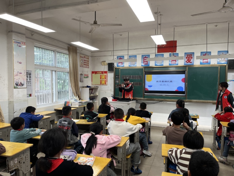 為傳承非遺文化,助力鄉村文化振興,扎實推進“一院一鎮一品”志愿服務行動,4月17日,教師教育學院“‘音’為有愛 與‘心’同行”志愿服務團隊赴銀屏鎮中心小學開展藝術支教活動,帶領鄉村的孩子們共同感受國家級非物質文化遺產巢湖民歌的音韻之美,用歌聲編織音樂夢想。
