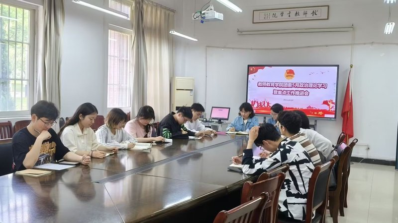 為進一步統一思想,提升團組織凝聚力和戰斗力,5月13日中午12:30,教師教育學院團委在藝術樓西104會議室召開5月政治理論學習暨工作部署會,團委掛職副書記代佳鑫、團委兼職學生副書記、各學生組織負責人參會,會議由學院團委副書記湯重主持。