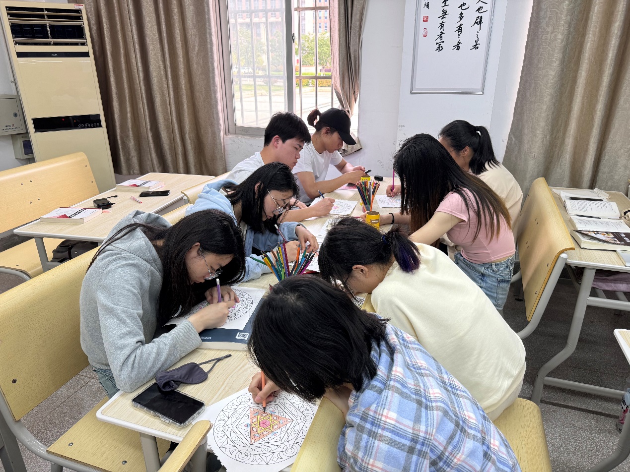 近日,教師教育學院21級應心班在博學樓112開展了一節有趣的心理團輔課,此次課程通過曼陀羅繪畫的方式,讓同學們更好地認知、感受、體驗自己的情緒,釋放壓力,舒緩情緒,探索自我。