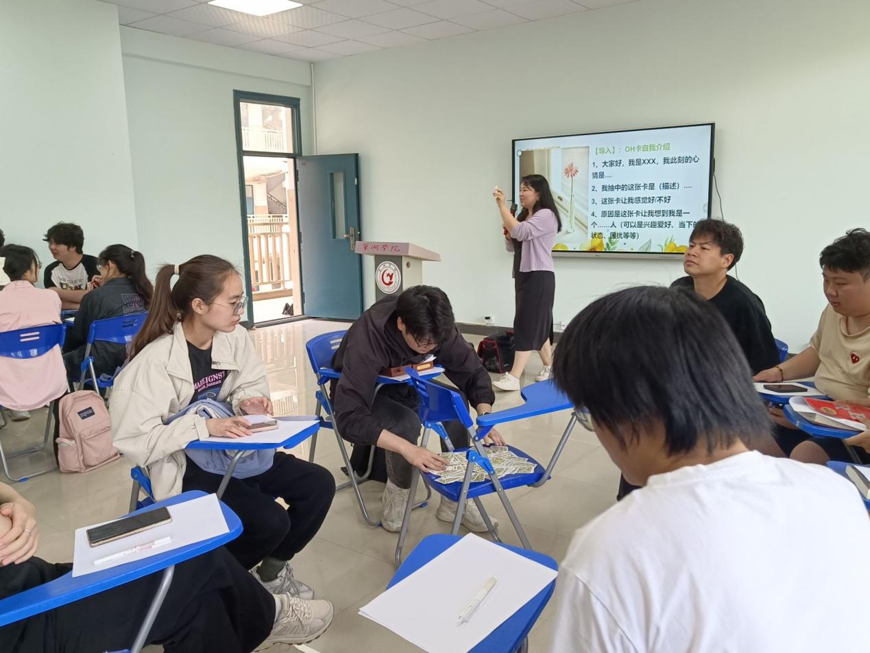 除了個人分享外,團輔課上還開展了小組討論和集體互動環節。同學們在小組內圍繞OH卡上的主題展開討論,分享彼此的看法和感受。在集體互動中,大家通過描述手中OH卡給自己的感受,進一步加深了對OH卡所傳遞信息的理解和應用。