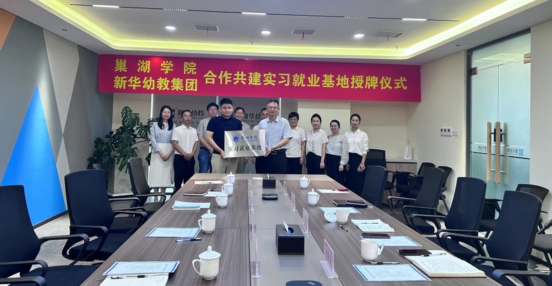 訪問組一行首先來到合肥市新華幼教集團進行實習就業工作合作共建洽談及基地授牌,集團負責人介紹集團概況、發展模式、辦學理念及托育幼教、幼兒教育等領域工作開展情況。周峰對新華幼教集團近年來的支持表示感謝,并介紹學校基本情況及學前教育專業的辦學理念,表示雙方在幼兒教育理念上相契合,希望雙方在人才培養、課題研究、實踐教學等方面能夠攜手共進實現共贏。