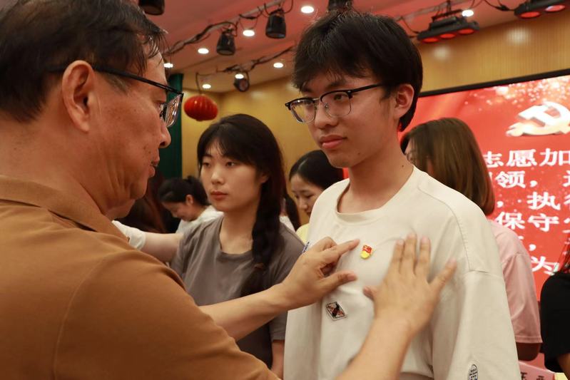 隨后,出席典禮的各位委員、支部書記共同為剛剛吸收入黨和剛剛轉正的黨員授予并佩戴了黨員徽章,黨委書記朱玉票帶領全體黨員舉行了入黨宣誓。