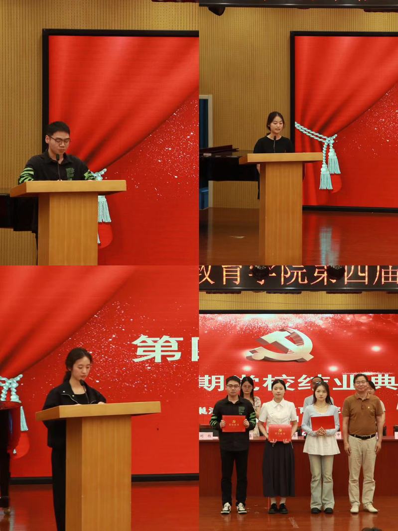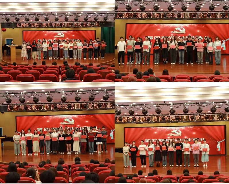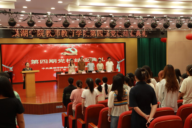 為持續學習貫徹習近平新時代中國特色社會主義思想和黨的二十大精神,深化開展黨紀學習教育,進一步加強黨員積極分子教育管理,引導當代大學生樹立堅定理想信念、加強黨性修養,根據學院黨委部署安排,2024年6月28日中午,教師教育學院第四期黨校結業典禮在藝術樓報告廳隆重舉行。儀式由兼職組織員劉楊主持,學院黨委書記朱玉票出席會議并講話。學院黨委副書記左勁中、學生第一黨支部書記王相、學生第二黨支部書記湯重、副書記代佳鑫及50名入黨積極分子、20名發展對象和14名預備黨員參加了結業典禮。