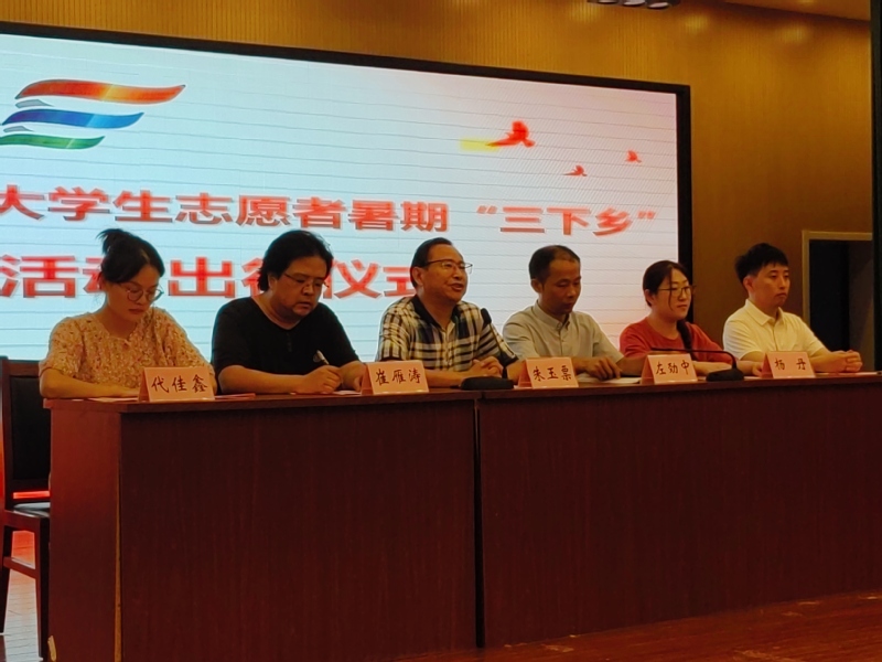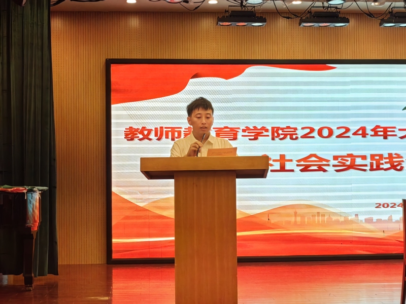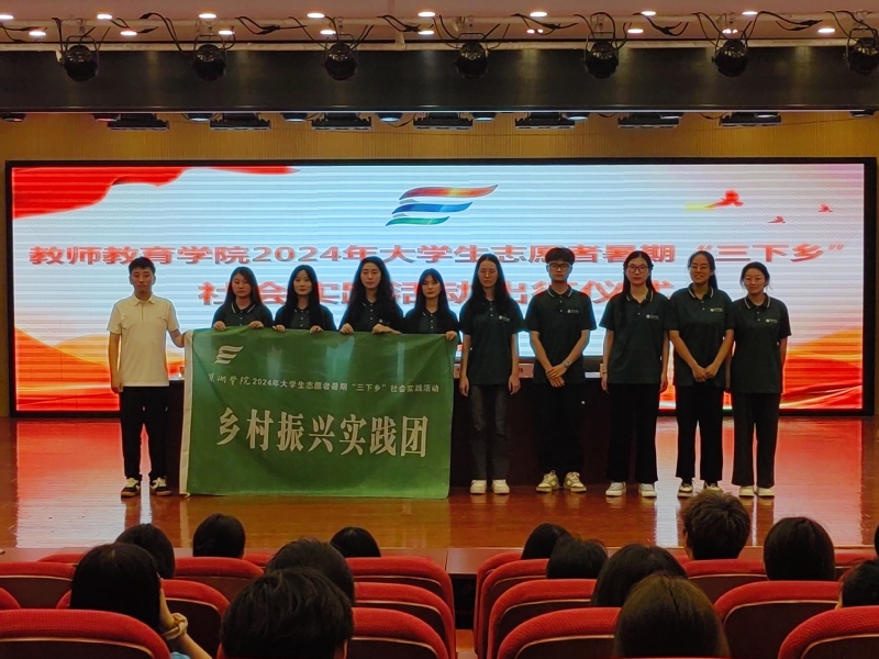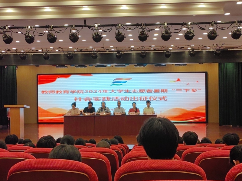 為深入學習貫徹習近平新時代中國特色社會主義思想和黨的二十大精神,引導和幫助青年學生在社會課堂中受教育、長才干、作貢獻,7月10日下午,教師教育學院在藝術樓報告廳舉行2024年大學生志愿者暑期“三下鄉”社會實踐活動出征儀式。學院黨委書記朱玉票、黨委副書記左勁中、指導教師代表和校級重點團隊全體成員參加儀式,儀式由團委副書記代佳鑫主持。