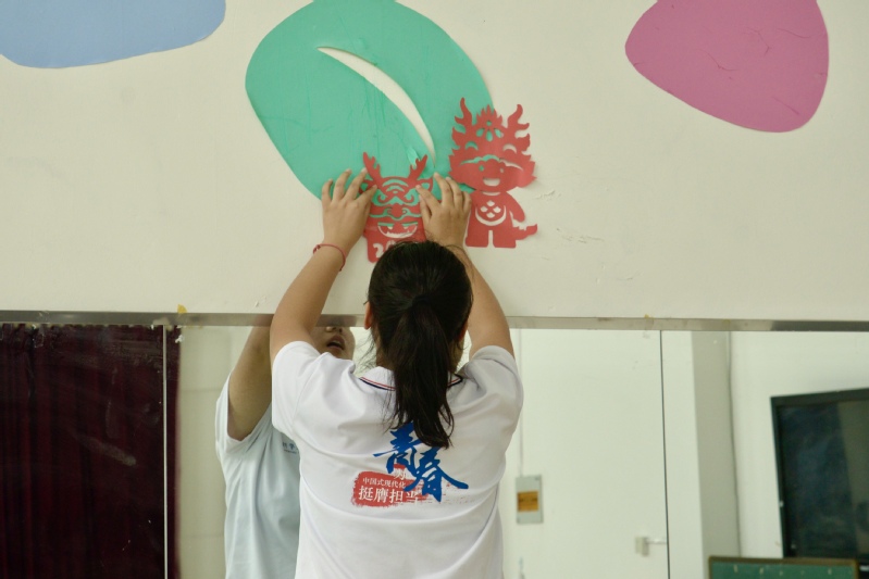 為讓非遺文化“活”起來,在新時(shí)代煥發(fā)青春,7月19日,實(shí)踐團(tuán)成員來到銀屏鎮(zhèn)中心幼兒園開展非遺主題環(huán)創(chuàng)布置。豐富的圖案、明艷的色彩構(gòu)成了專屬銀屏鎮(zhèn)幼兒園的特色環(huán)創(chuàng),依托“非遺文化”為幼兒打造不一樣的生活學(xué)習(xí)體驗(yàn),在潛移默化中感受中華文化的魅力。隊(duì)員們認(rèn)真布置,將傳統(tǒng)的繪畫融入現(xiàn)代色彩,通過非遺環(huán)創(chuàng)特有的表達(dá)形式增強(qiáng)幼兒的文化認(rèn)同和文化理解,在孩子們心中播下非遺的種子。在幼兒園里,孩子們將看見非遺文化的全新演繹,非遺文化將不再是古老而遙遠(yuǎn)的記憶,而是充滿活力與創(chuàng)意的精彩呈現(xiàn),為幼兒發(fā)展提供無限可能。