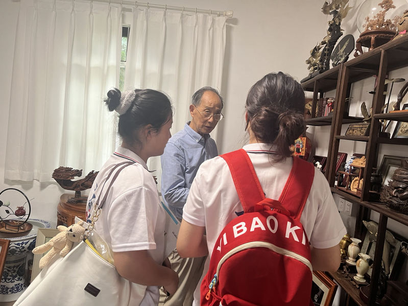 方寸之間,妙手彩繪。7月15日下午,實(shí)踐團(tuán)成員拜訪了卵石畫技藝傳承人舒天佑。走進(jìn)舒老先生家中,五彩斑斕的石頭藝術(shù)品映入眼簾,普通的石頭被賦予了新的生命。舒老先生拿起一塊石頭,現(xiàn)場(chǎng)展示了作畫技巧,寥寥幾筆便勾勒出仙鶴的形態(tài),看似隨意的幾筆卻是那么深入人心,舒老先生表示:“在我眼里,在石頭上作畫的過程就像是與石頭進(jìn)行了一場(chǎng)心靈的對(duì)話,讓它們?cè)谏手袩òl(fā)出新的生機(jī)。”一根毛筆、一塊石頭,靈動(dòng)生花,卵石畫不僅僅展示的是傳統(tǒng)技藝,更是舒老先生游刃于方寸之間的匠心。