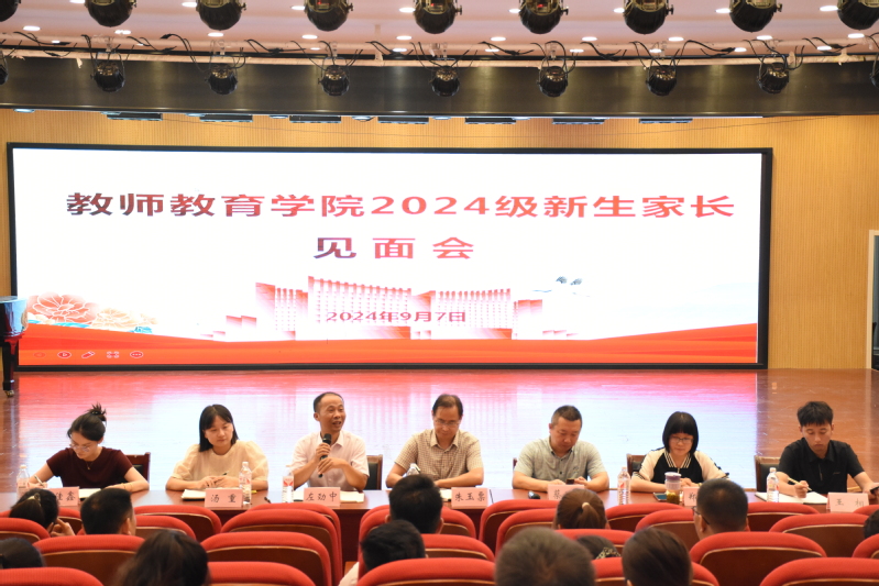 為增進新生家長對學院的了解,加強家校協(xié)同育人,幫助新生盡快適應大學生活和學習,9月7日下午,教師教育院在學校藝術樓音樂報告廳組織召開2024級新生家長見面會。學院黨委書記朱玉票、副院長蔡廣、黨委副書記左勁中、副院長鄭艷,2024級全體新生輔導員及部分新生家長參加活動。會議由朱玉票主持。