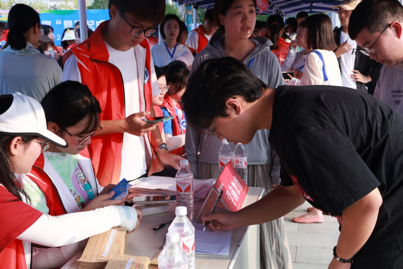 以心迎“新”,貼心服務。9月7日上午7:00,全體新生班級輔導員以及150余名迎新志愿者初迎朝陽等候新生的到來。迎新現場,志愿者們與高溫烈日同行,穿梭于校園的各個角落,從校門口到報到處,再到宿舍區,為新生搬運行李、宿舍登記、答疑解惑,幫助新生安全有序完成報到。雖然天氣炎熱,但是志愿者們不懼烈日,全程陪伴,被汗水浸濕的紅馬甲生動詮釋了“奉獻、友愛、互助、進步”的志愿服務精神。