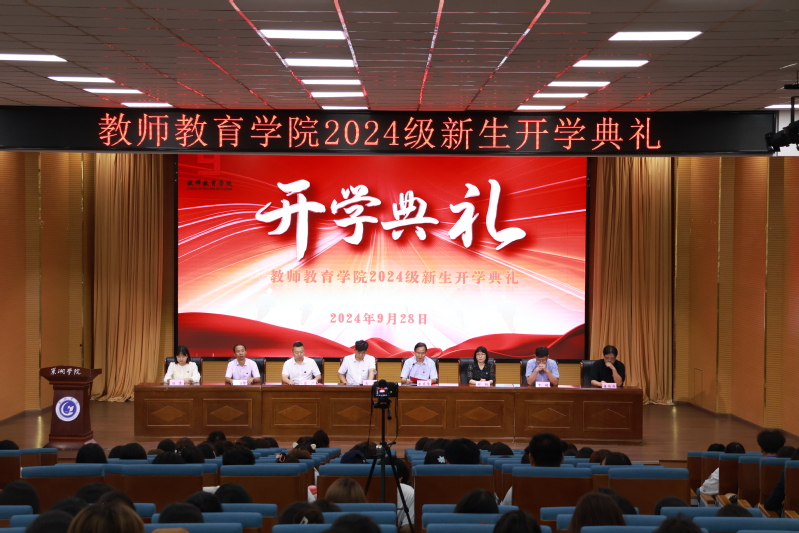 秋光為序,筑夢征程,新學肇始,萬象更新。9月28日晚18:30,教師教育學院在求實樓報告廳隆重舉行2024級新生開學典禮,共同見證294名新生開啟新的求學征程。學院黨政班子成員、各專業負責人、團委副書記、教師代表、專職輔導員和2024級全體新生出席,此次典禮由學院黨委書記朱玉票主持。