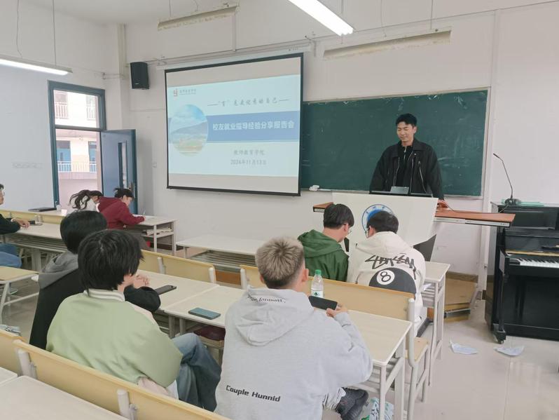 為進(jìn)一步提升學(xué)生的就業(yè)競爭力和職業(yè)規(guī)劃能力,2024年11月13日,教師教育學(xué)院在藝術(shù)樓東221舉辦‘育’見更優(yōu)秀的自己——校友就業(yè)經(jīng)驗(yàn)分享會。活動邀請學(xué)院2024屆音樂表演專業(yè)優(yōu)秀畢業(yè)生趙嘉偉,面向音樂表演專業(yè)同學(xué)分享就業(yè)經(jīng)驗(yàn)和心得體會。會議由學(xué)院就業(yè)聯(lián)絡(luò)員代佳鑫主持。