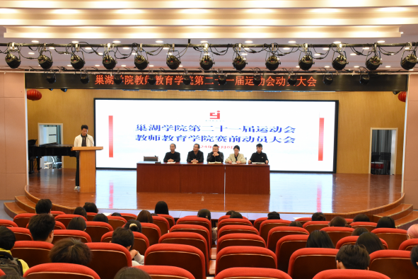 蓄勢待發,凝心聚力。為鼓舞運動員賽前斗志,11月8日中午12:30,學院召開了巢湖學院第二十一屆運動會賽前動員大會。會上,播放了《揮灑汗水,運動不止》賽前訓練回顧視頻,一幕幕艱苦訓練的場景讓在場師生動容;新老運動員代表講話,表示將不斷自我加壓,調整自身狀態,在賽場上奮力拼搏,為學院增光添彩;學院黨委書記朱玉票圍繞“本分”“本心”“本質”“本色”詮釋了運動會的意義和體育精神的真諦;副院長蔡廣希望全體運動員賽出風格、賽出水平,展現出教師教育學院的風采。此次賽前動員大會提振了士氣,增強了團隊凝聚力和戰斗力。