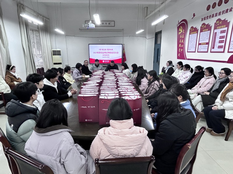 在全國研究生考試即將開始之際,為鼓舞士氣,進一步增強考研學子信心和決心,2024年12月9日下午,教師教育學院在學院會議室召開2025年研究生考試考前動員大會。學院黨政領導班子成員、畢業班輔導員及參與2025年研究生考試的部分畢業生代表參會。會議由學院黨委副書記左勁中主持。