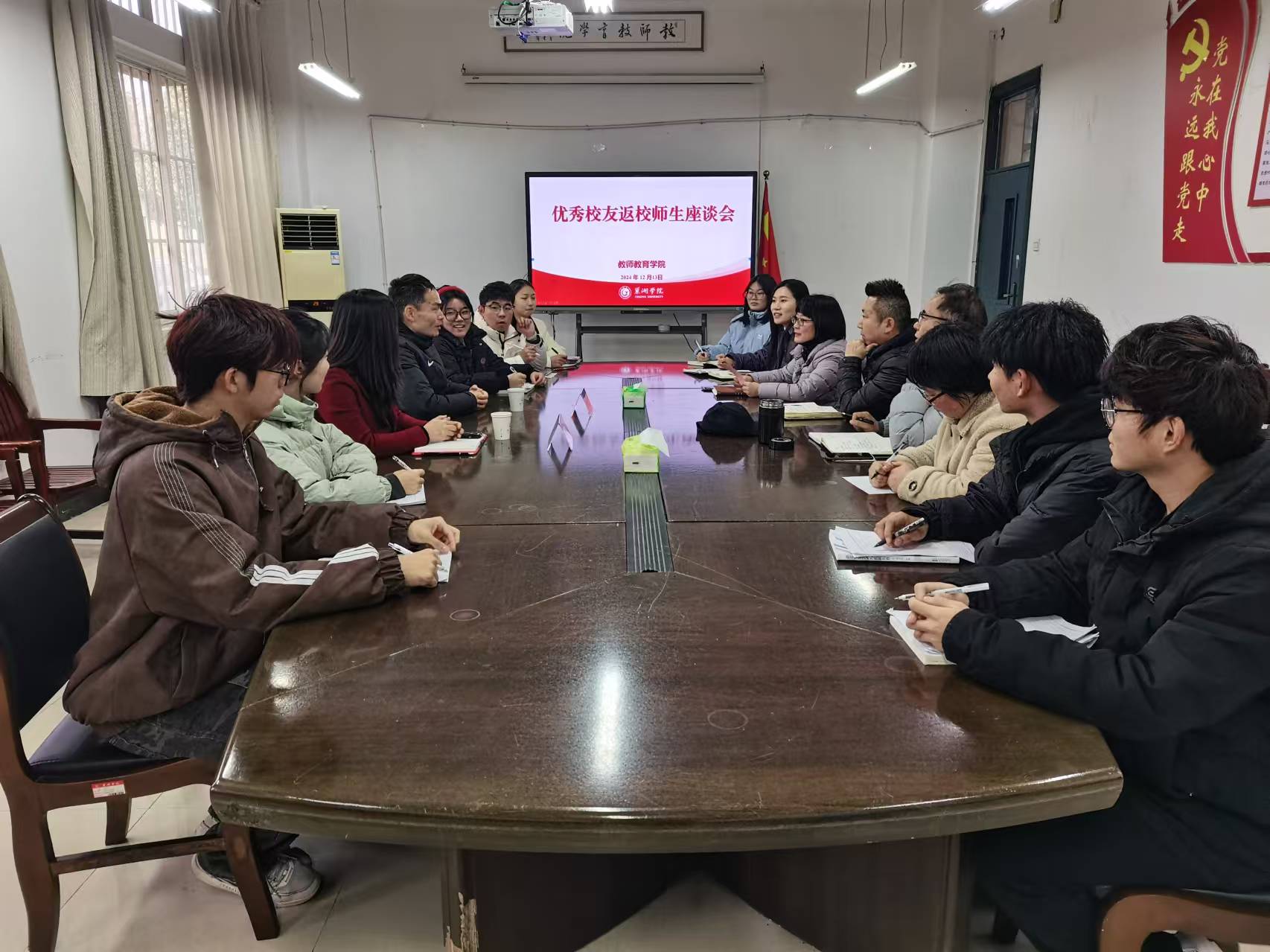 冬意漸濃時,桃李芬芳歸。2024年12月14日,教師教育學院舉辦優秀校友返校師生座談會,2010屆應用心理學專業校友——上海體育科學研究所副研究員劉書強、上海定山信息技術有限公司銷售總監儲江燕應邀參會,教師教育學院領導班子、系部負責人、教師代表和學生代表參加會議,教師教育學院副院長鄭艷主持會議。