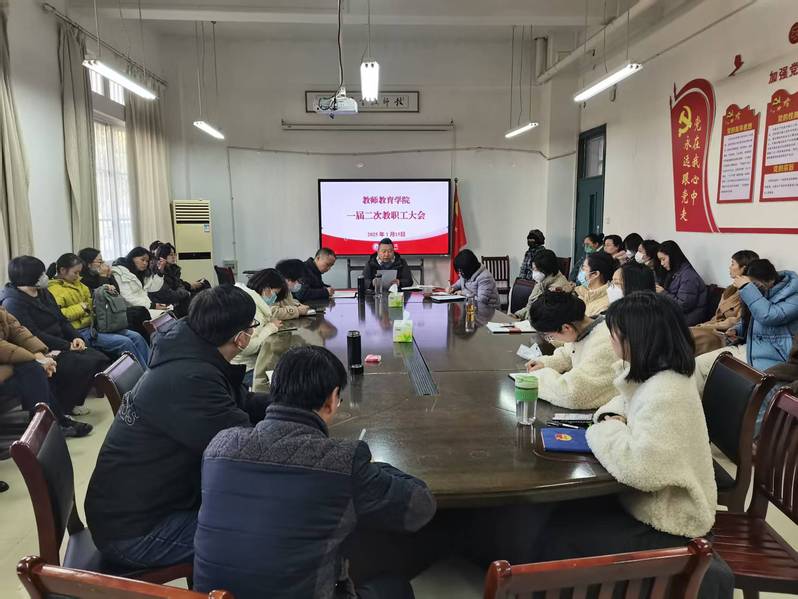 2025年1月15日,教師教育學(xué)院召開一屆二次教職工大會。學(xué)院全體教職工參加會議。會議由學(xué)院黨委副書記左勁中主持。