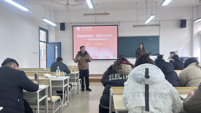 為深入貫徹落實教育部關于全面實施學校美育浸潤行動的通知精神,進一步推動公共藝術(音樂類)課程改革,提升美育教學質量。2025年2月26日,巢湖學院公共藝術教育中心、教師教育學院音樂系召開了一場“聚焦美育浸潤,深耕公共藝術(音樂類)課程改革”研討會。本次研討會由公共藝術教育中心主任顧婷婷主持,教師教育學院黨委副書記胡傳雙出席會議,音樂系全體教師共同參與。