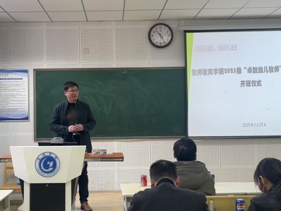 3月20日下午,教師教育學院“卓越幼兒教師”實驗班開班儀式在崇學樓南204教室舉行。副院長(主持工作)蔡廣、黨委副書記胡傳雙、省級一流專業建設點負責人李瑛教授出席儀式,學前教育專業教師團隊及2023級“卓越幼兒教師”實驗班全體同學共同參加。活動由教育系主任甘超主持。