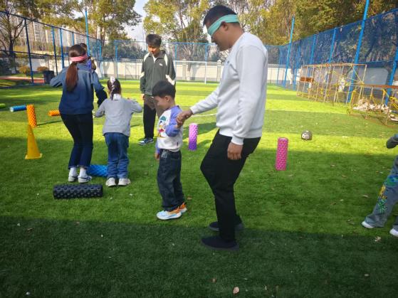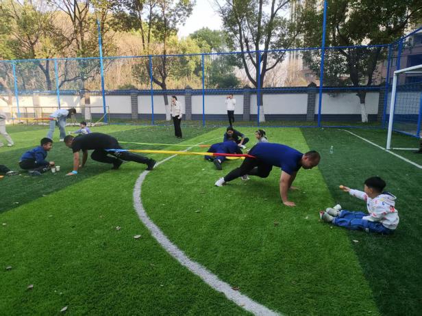 活動伊始,在王蕓蕓老師的帶領下,啟明星心理協會的志愿者們熟悉活動流程并進行現場布置。本活動是以“家是最堅強的后盾”為核心理念,精心設計了四大主題游戲模塊。在“親子盲行”環節中,家長與孩子通過蒙眼引導完成障礙穿越,一位消防員父親分享道:“平時總在火場指引方向,今天被孩子的聲音牽著走,突然發現他已經能成為我的眼睛了。”而“兩人三足親子飛舞”項目則讓家庭成員在綁腿協作中感受默契養成,現場不時傳出歡快的笑聲。