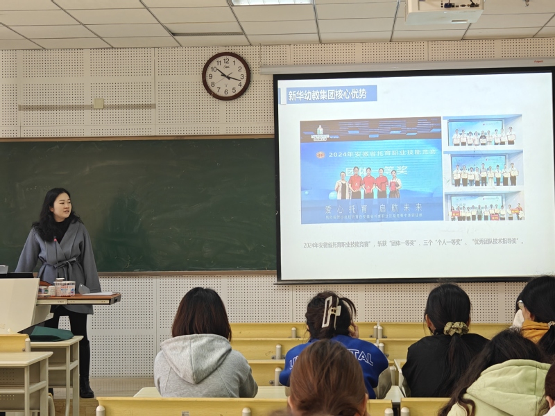 新華幼教集團綜合管理部總監金星辰介紹了企業發展歷程、教育品牌特色、核心優勢、崗位需求等情況。