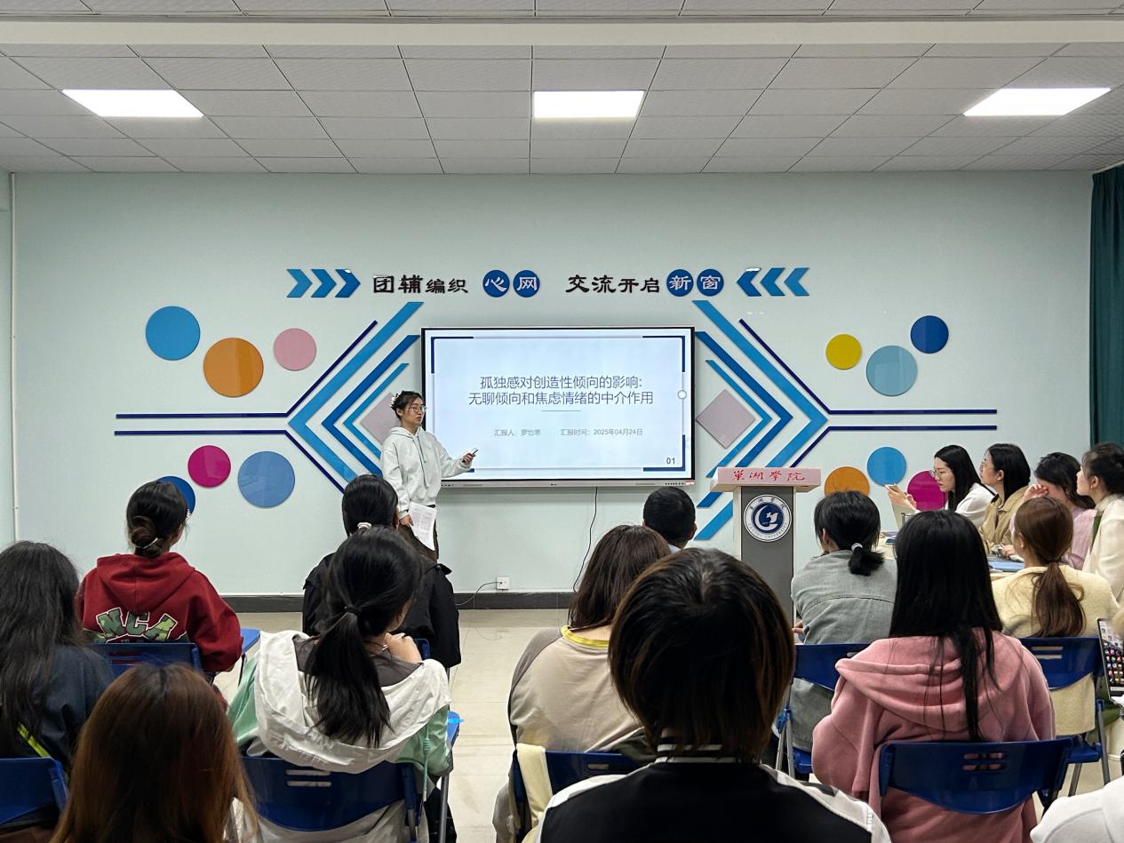 組會伊始,羅怡寒同學報告了心理學核心期刊上的論文《孤獨感對創造性傾向的影響:無聊傾向和焦慮情緒的中介作用》,依次從研究背景、研究方法、研究內容和討論總結展開文獻匯報,為在場師生呈現了全面的學術圖景。匯報結束后,同學們踴躍提問,從研究方法到結論各抒己見,在管錦亮、張碧影和王安琪等老師的引導下,同學們深入思考,拓展學術視野,現場學術氛圍濃厚。