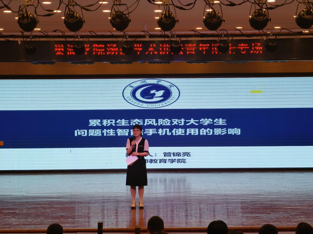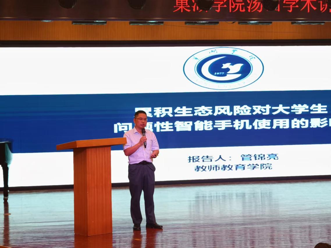 為進一步提升學院師生學術素養、拓展專業視野,促進學術交流,搭建師生交流平臺,營造濃厚學術氛圍,514日下午,教師教育學院青年博士管錦亮為師生們做了一場題為“累積生態風險對大學生問題性智能手機使用的影響”專場講座。講座藝術樓報告廳舉行,教師教育學院教師吳兵、信中貴、崔雁濤、劉傳行、陶瑋、江盈穎和應用心理學專業部分班級學生參加,副院長鄭艷主持