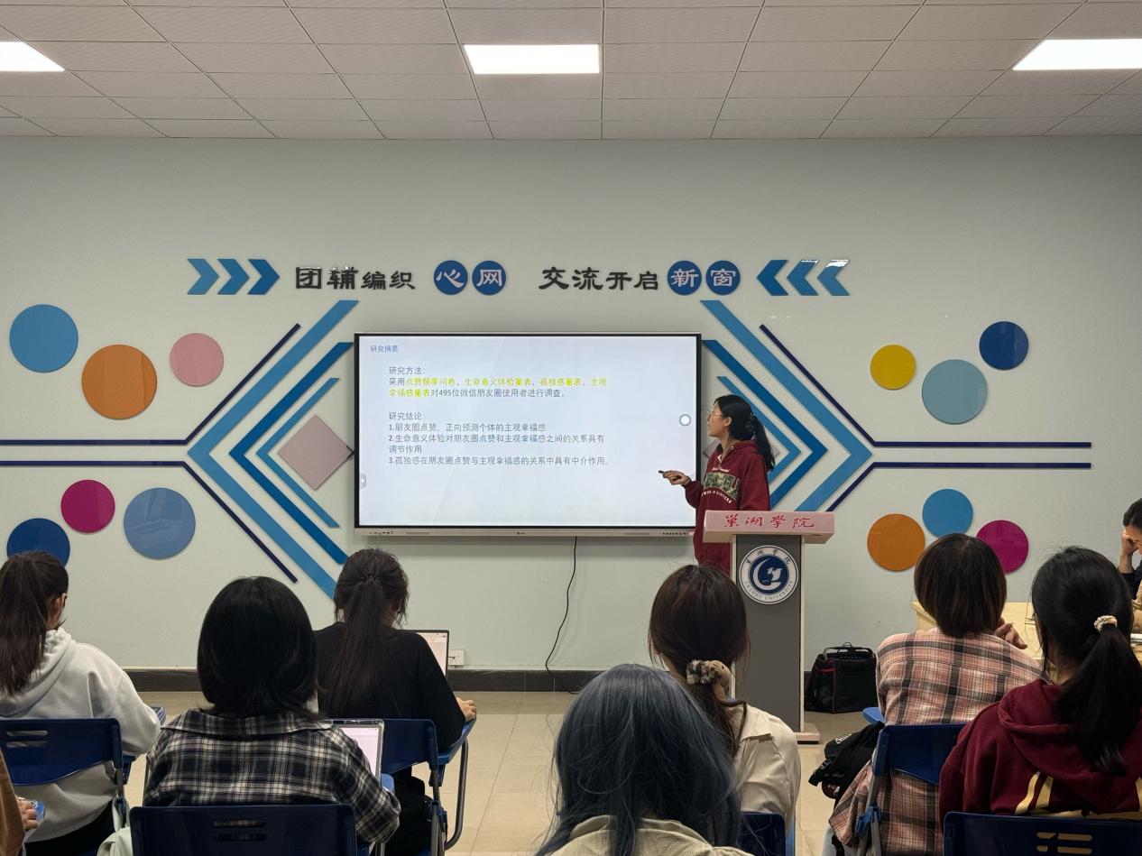 組會伊始,劉夢婷同學報告了心理學核心期刊上的論文《朋友圈點贊與主觀幸福感的關系:一個有中介的調節模型》,依次從研究背景、研究方法、研究結果、討論總結和展望展開文獻匯報。匯報結束后,同學們踴躍發言,就文獻中的理論知識模糊、研究局限性等問題展開深度探討,現場學術氛圍濃厚,碰撞出思維火花,為后續學術研究與學習拓寬了思路。