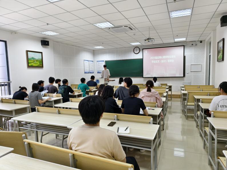 2025年5月17日,教師教育學(xué)院2025屆應(yīng)用心理學(xué)專業(yè)本科畢業(yè)論文答辯工作在崇學(xué)樓南308-311教室開展。該專業(yè)9位專任教師50名應(yīng)用心理學(xué)專業(yè)畢業(yè)生參加此次論文答辯工作。