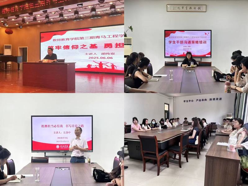 為深入學(xué)習(xí)貫徹習(xí)近平新時代中國特色社會主義思想,提升學(xué)生骨干的政治素養(yǎng)與綜合能力,6月6日至13日,教師教育學(xué)院組織開展了第三期“青馬工程”學(xué)生骨干培訓(xùn)班集中理論學(xué)習(xí)活動。學(xué)院黨政領(lǐng)導(dǎo)班子為全體學(xué)員作專題輔導(dǎo)報告。
