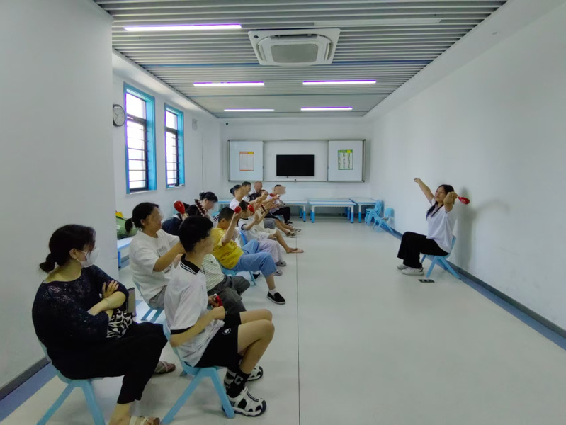 實踐團整合教育學、心理學、藝術學多學科專業力量,形成“課程設計—心理評估—環境創設”協同機制。前期,團隊成員通過與康復中心老師、家長的深度溝通,初步了解孩子們的情況并對部分課程加以改進,提高課程設計的合理性。在課堂中,志愿者時刻注意觀察孩子們的表現,對不能跟上課堂進度的孩子進行耐心指導。此外,團隊還提前開展特殊教育知識與急救培訓,每節課安排兩名志愿者全程陪伴,課堂中還有經驗豐富的特殊教育老師隨時提供指導與支持,確保團隊成員可以在特殊情況下做出合理的反應,切實保護孩子們與自身的安全。