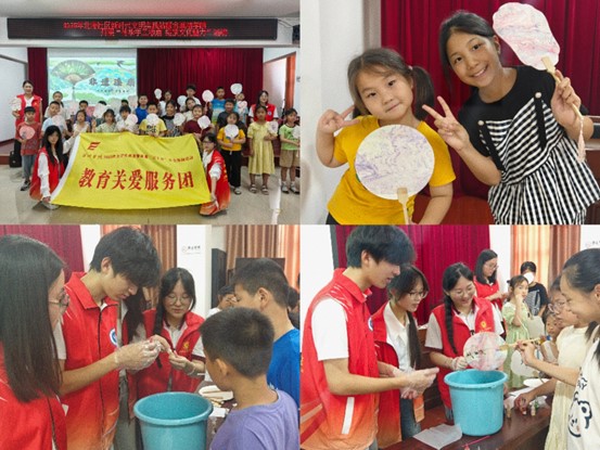 7月9日,陳雅楠主持開展了“療愈心靈”手工漆扇制作活動 ,實踐團成員備好空白漆扇、顏料等材料,指導孩子們創作專屬漆扇,借手工創作傳遞“專注當下、接納自我”的心理療愈理念,讓孩子在動手間釋放壓力。