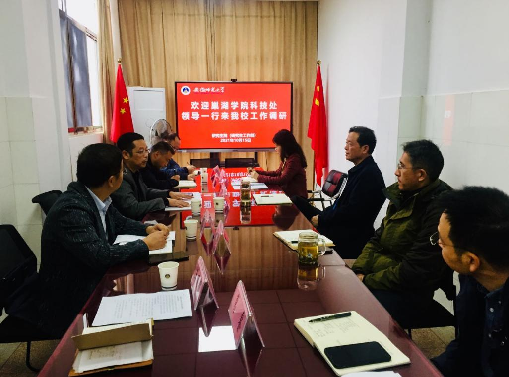 為扎實(shí)推進(jìn)碩士研究生聯(lián)合培養(yǎng)工作,10月15日下午,科技處處長(zhǎng)萬(wàn)新軍率副處長(zhǎng)朱明、電子工程學(xué)院許明坤教授、化學(xué)與材料工程學(xué)院陳小舉博士等專(zhuān)程赴安徽師范大學(xué)研究生院調(diào)研交流。安徽師范大學(xué)研究生院院長(zhǎng)、黨委研究生工作部部長(zhǎng)席貽龍,研究生院辦公室主任嚴(yán)俊、研究生院培養(yǎng)管理辦公室主任汪勇、研究生院學(xué)位建設(shè)辦公室主任葛睿等熱情接待了巢湖學(xué)院一行。