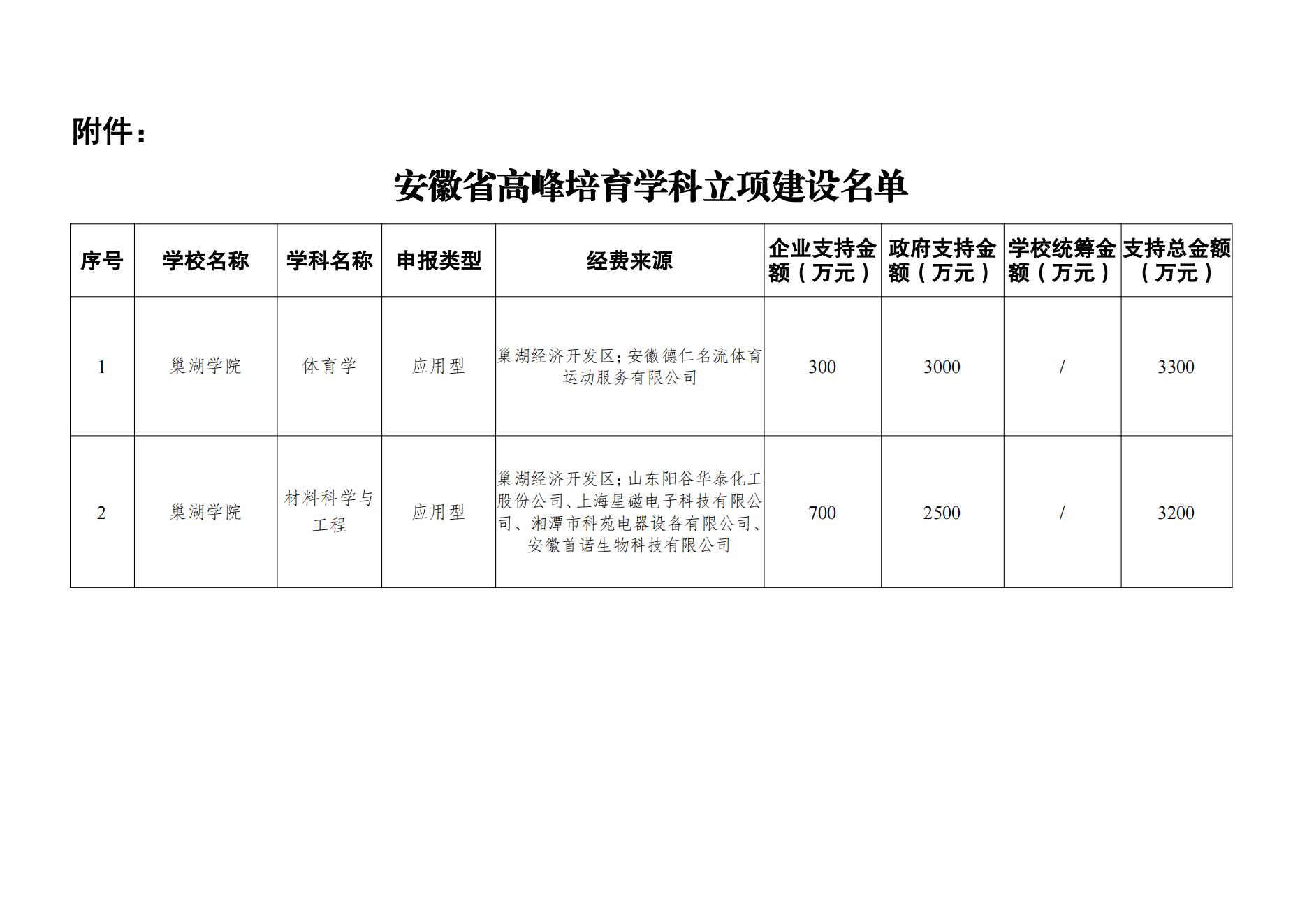 巢湖學院-附件:安徽省高峰培育學科立項建設名單.pdf