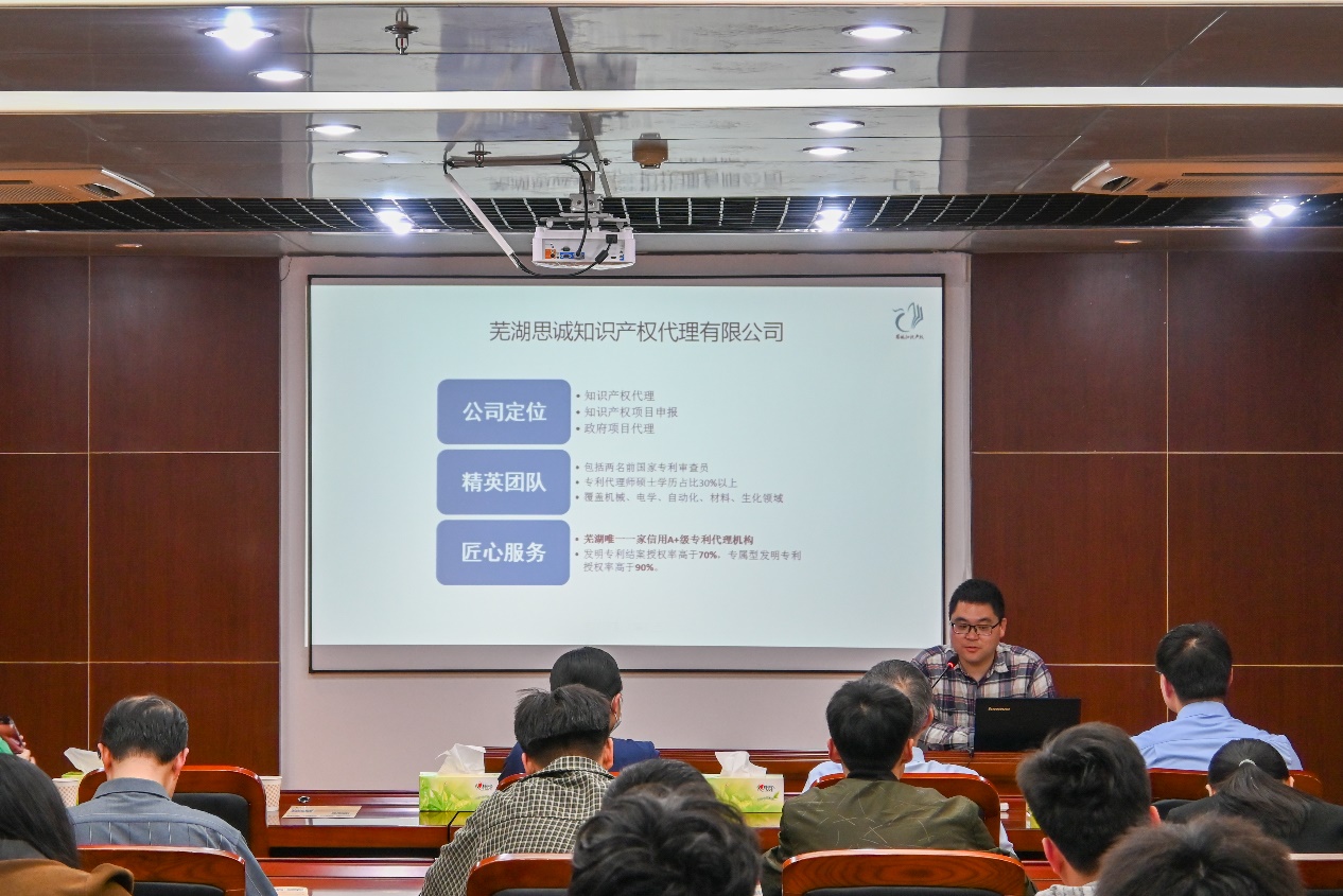 為提高師生知識產權轉化運用意識,促進專利高質量發展,4月24日,巢湖學院與安徽巢湖經開區在第二會議室聯合舉辦2024年知識產權宣傳周專題交流會(巢湖學院站)。邀請蕪湖思誠知識產權代理有限公司代理師宦曉軍作專題宣講。