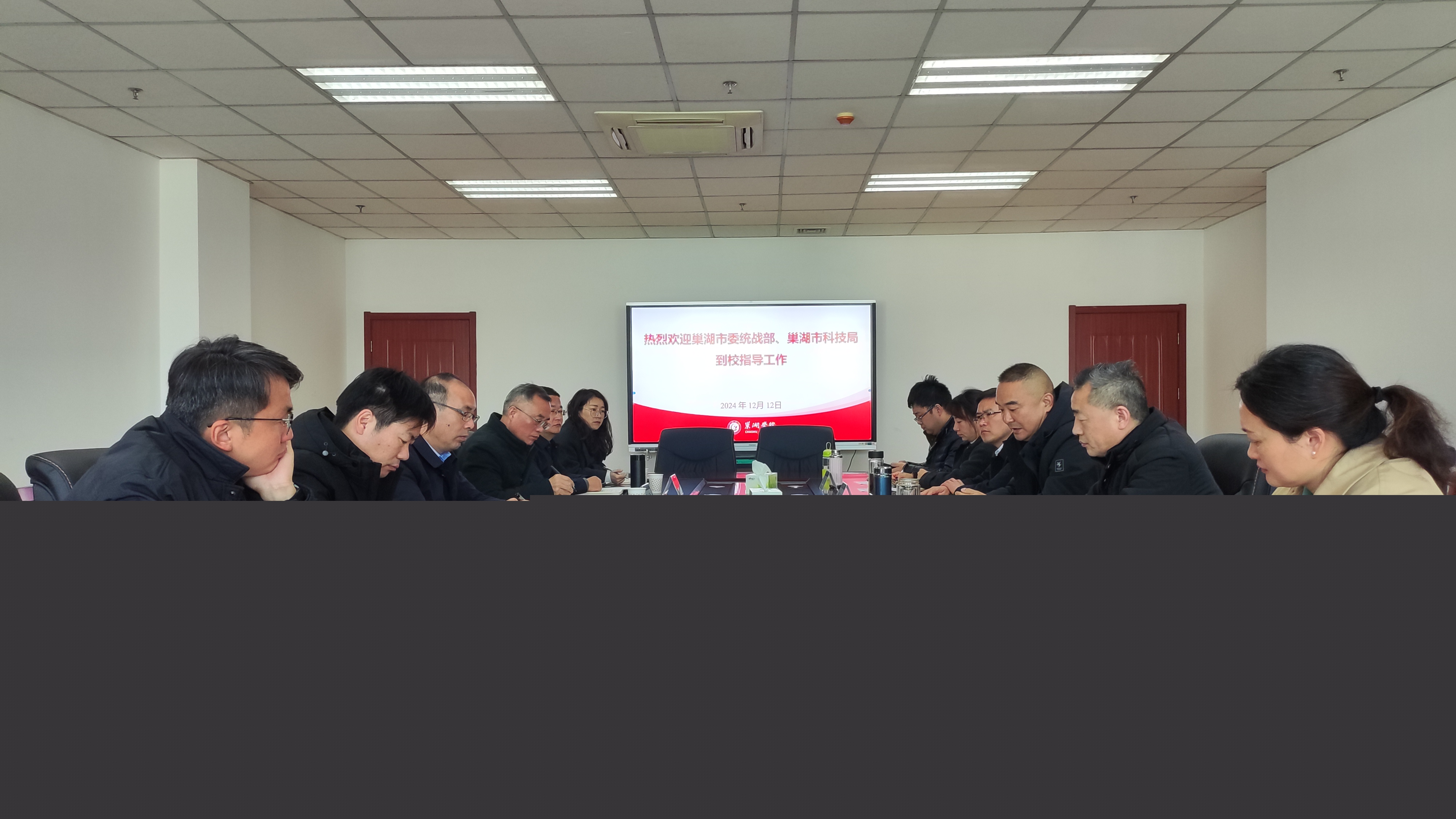 為進一步深化校地合作,構建校地聯(lián)合、優(yōu)勢互補、互惠雙贏的發(fā)展新格局。12月12日上午,巢湖市委統(tǒng)戰(zhàn)部副部長曹勇,巢湖市科技局局長魏敏、副局長錢開蓮,巢湖市科創(chuàng)集團董事長項云生等一行來校開展合作交流。校黨委委員、副校長丁俊苗,科研處處長姚磊,化學與材料工程學院院長王小東,生物與環(huán)境工程學院副院長陳小舉及相關教師參加交流會。會議由姚磊主持。