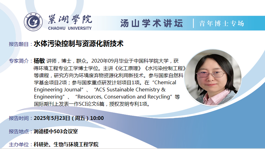 湯山學術講壇青年博士專場第11講:(5月23日:生物與環境工程學院楊敏博士講座)
