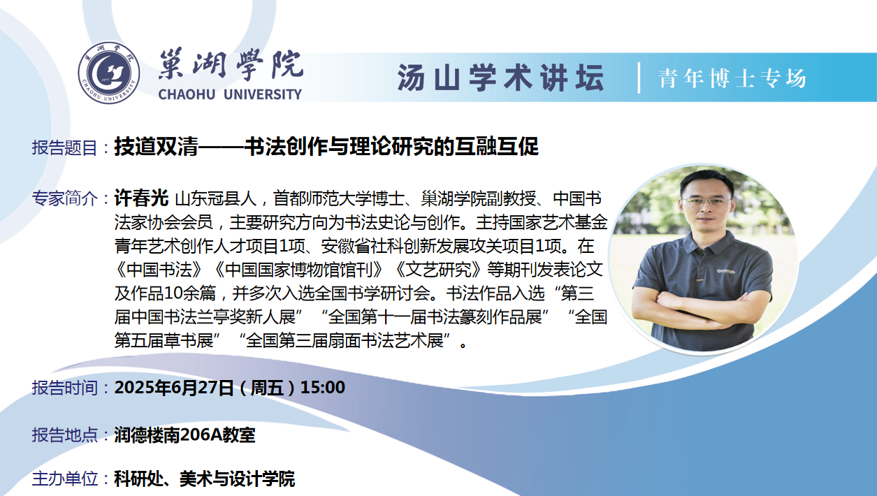 湯山學術講壇青年博士專場第19講:(6月27日:美術與設計學院許春光博士講座)