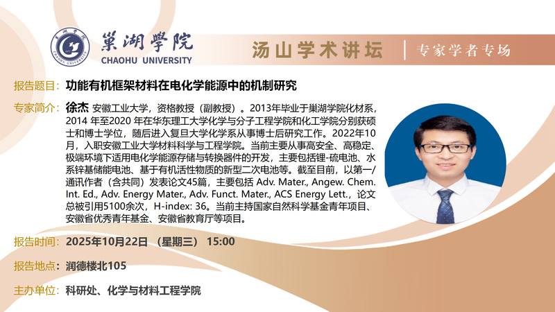 10月22日:優秀校友-安徽工業大學徐杰資格教授講座