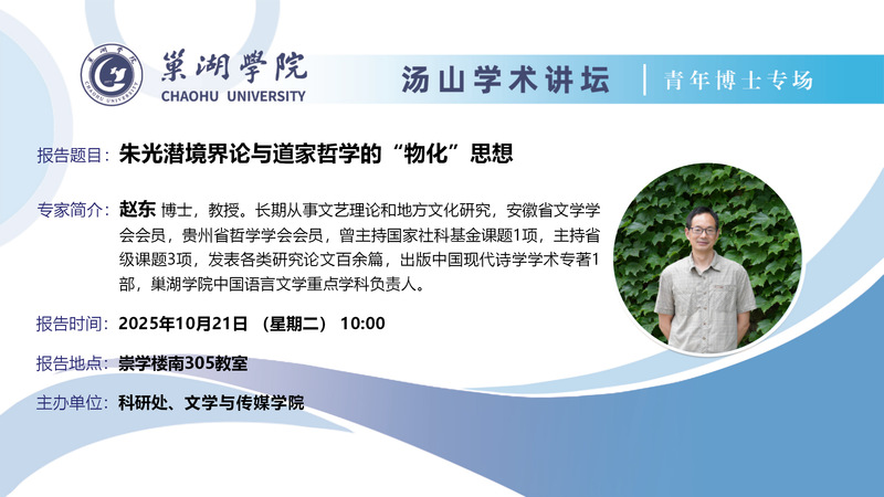 湯山學術講壇青年博士專場第23講:(10月21日:文學與傳媒學院趙東博士講座)